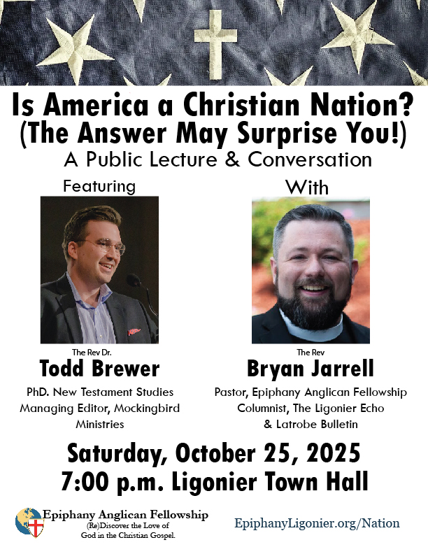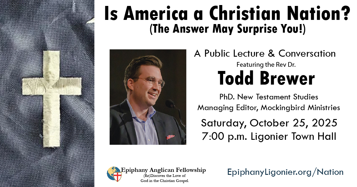 The Rev. Dr. Todd Brewer will be joining Pastor Bryan Jarrell and Epiphany Anglican Fellowship on Saturday, October 25th, at 7pm, to explore this very question. Dr. Brewer received his PhD in New Testament Studies from the University of Durham in the UK, comparing the literary structure of the canonical Christian gospels against alternative “gnostic” gospels that followed them. He’ll report to us his studies of the unique values that Christainity proclaimed against its wider Roman cultural context, and in doing so, we’ll find some surprising insights from the past that address a question relevant to our political, social, and everyday life.